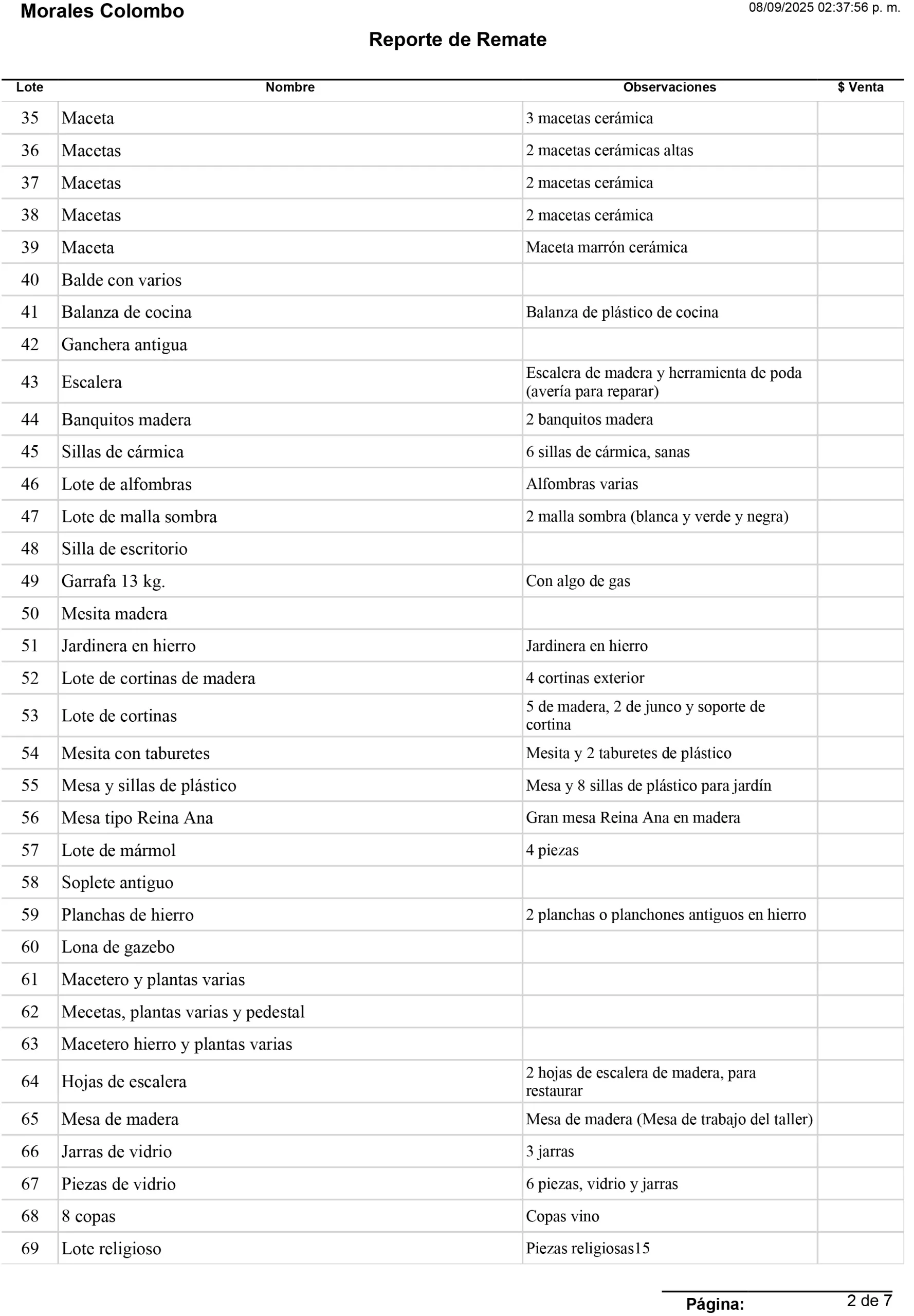 Rematan: Morales Colombo Subastas
