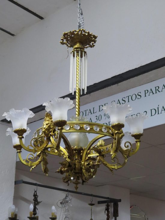 Lote: 46 - Araña de bronce de 6 brazos
