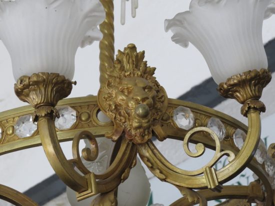 Portalamparas originales, en bronce, con 6 brazos, al la vista. Estimado $ 1.000 - $ 2.000